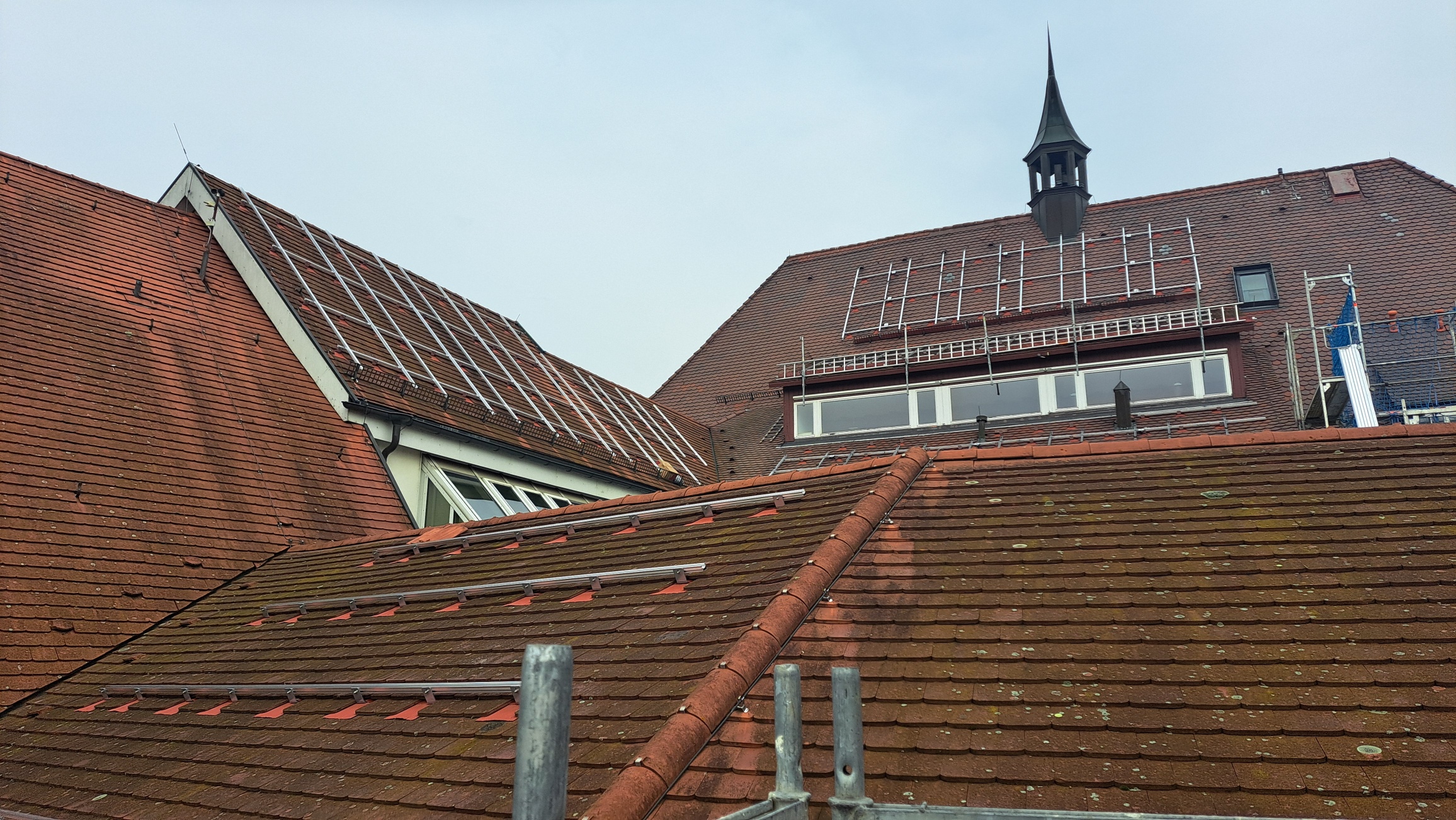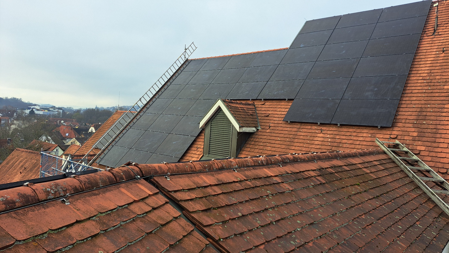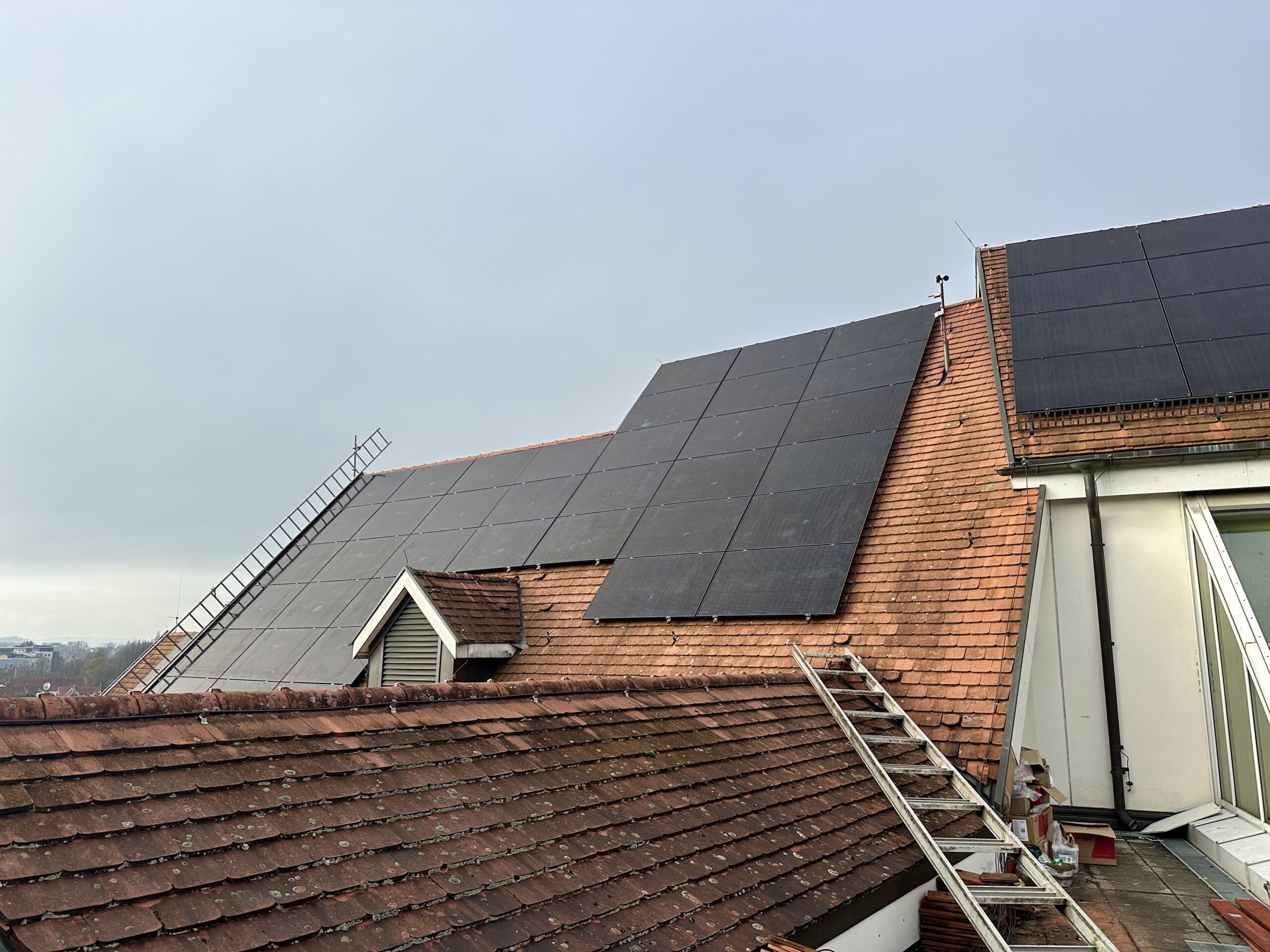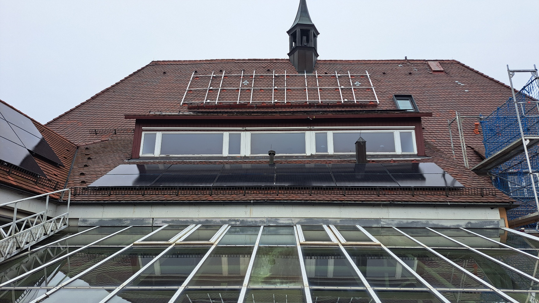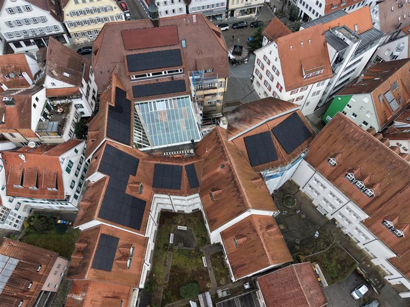 Die Arbeiten an der neuen Photovoltaikanlage auf dem Rathaus Nürtingen schreiten gut voran und markieren einen wichtigen Schritt in Richtung nachhaltiger Energieversorgung. Besonders erfreulich ist, dass dieses Projekt zeigt, wie moderner Klimaschutz und historische Bausubstanz erfolgreich miteinander kombiniert werden können – der Denkmalschutz spielte von Beginn an eine zentrale Rolle und machte die Planung zu einer ebenso anspruchsvollen wie spannenden Aufgabe. Die Montage der roten Module ist nicht nur technisch interessant, sondern auch visuell ein Highlight, das sich harmonisch in das historische Stadtbild einfügt.